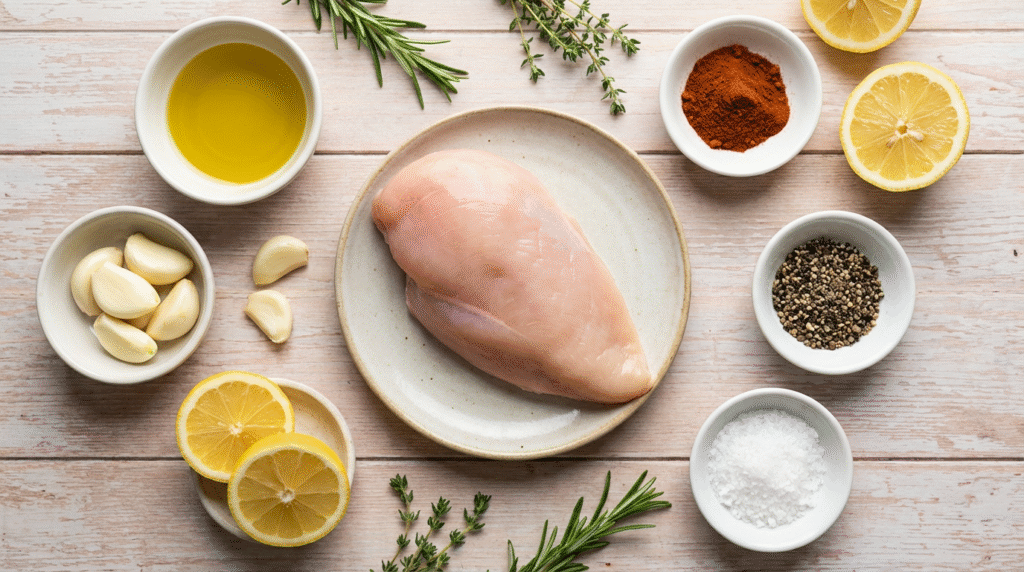 A successful healthy chicken breast recipe starts with clean, nutrient-dense ingredients that enhance flavor without unnecessary calories.