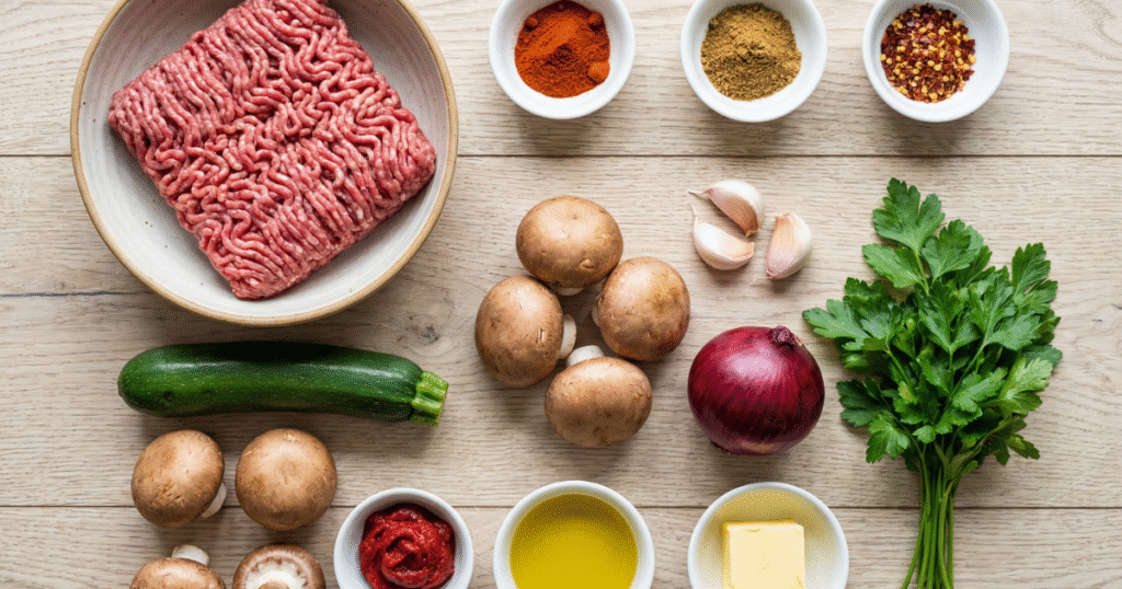 To create a rich, satisfying keto beef mince dish, ingredient quality matters. Below is a carefully curated list that balances flavor, texture, and macronutrient efficiency.